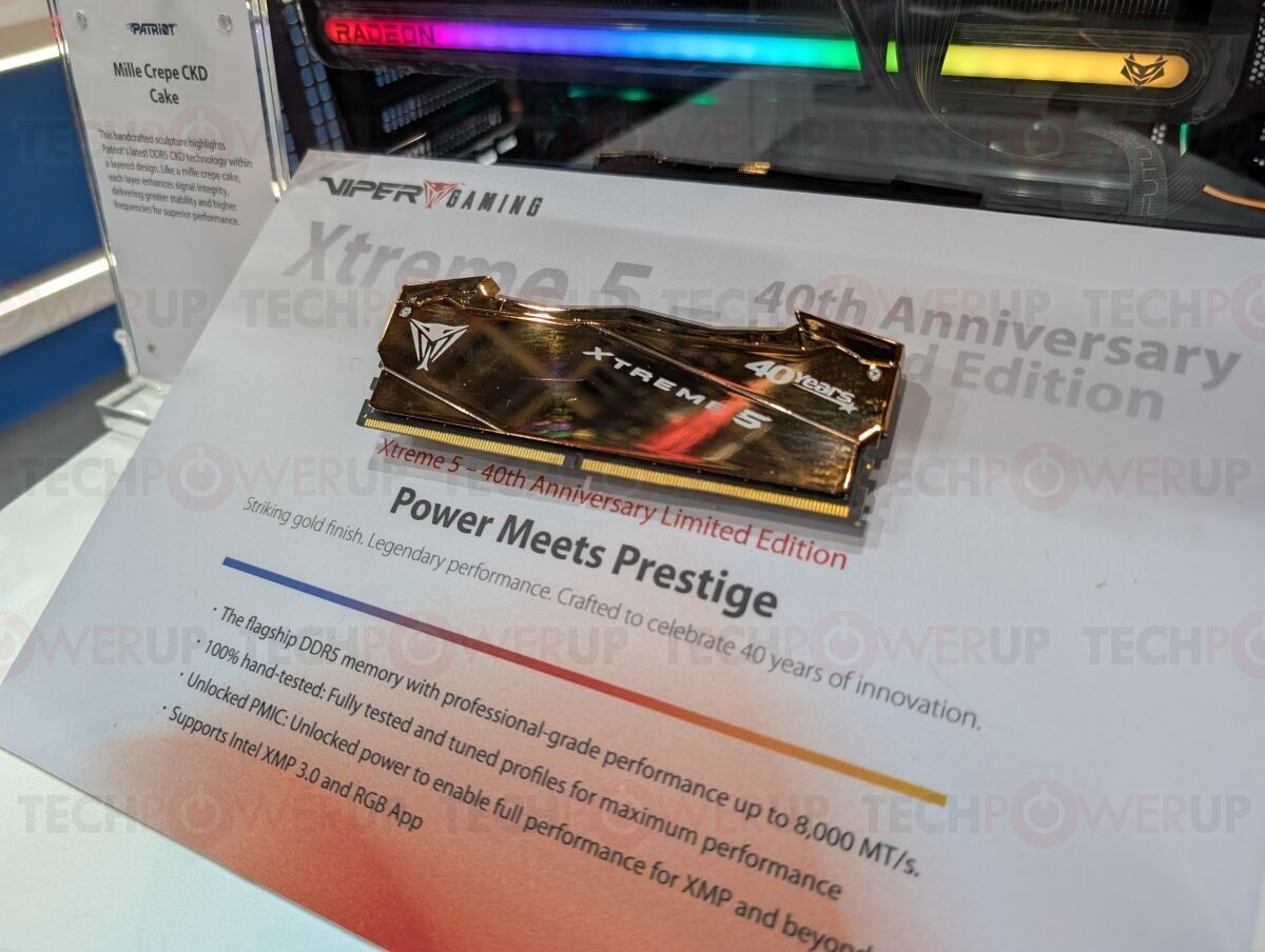 Patriot Memory отметила 40-летие компании демонстрацией свежих продуктов в рамках выставки Computex 2025. В их числе — новая линейка DDR5-памяти, включая флагманскую серию Viper Xtreme 5 и особое издание, посвящённое юбилею. Также компания представила обновлённую линейку внешних SSD, которая дополняет экосистему для геймеров, мобильных пользователей и энтузиастов. Среди наиболее заметных решений — Viper Xtreme 5 CKD RGB с частотой до 9600 МТ/с. Для сравнения, стандартные планки вроде Corsair Vengeance LPX или Crucial DDR5 Ballistix пока не поднимаются выше 7200–8000 МТ/с без разгона. Также доступны CKD CSODIMM-комплекты до 32 ГБ с тактовой частотой 7200 МТ/с, адресованные в первую очередь одобренным пользователям и сборщикам ПК «своими руками». Не обошлось и без специального издания — 40th Anniversary Limited Edition. Объём — до 48 ГБ на один модуль, а скорость — до 8000 МТ/с. PDP31 — переносной SSD с интерфейсом USB-C, скоростью до 1000 МБ/с и ёмкостью до 2 ТБ. С прозрачным окном в ко