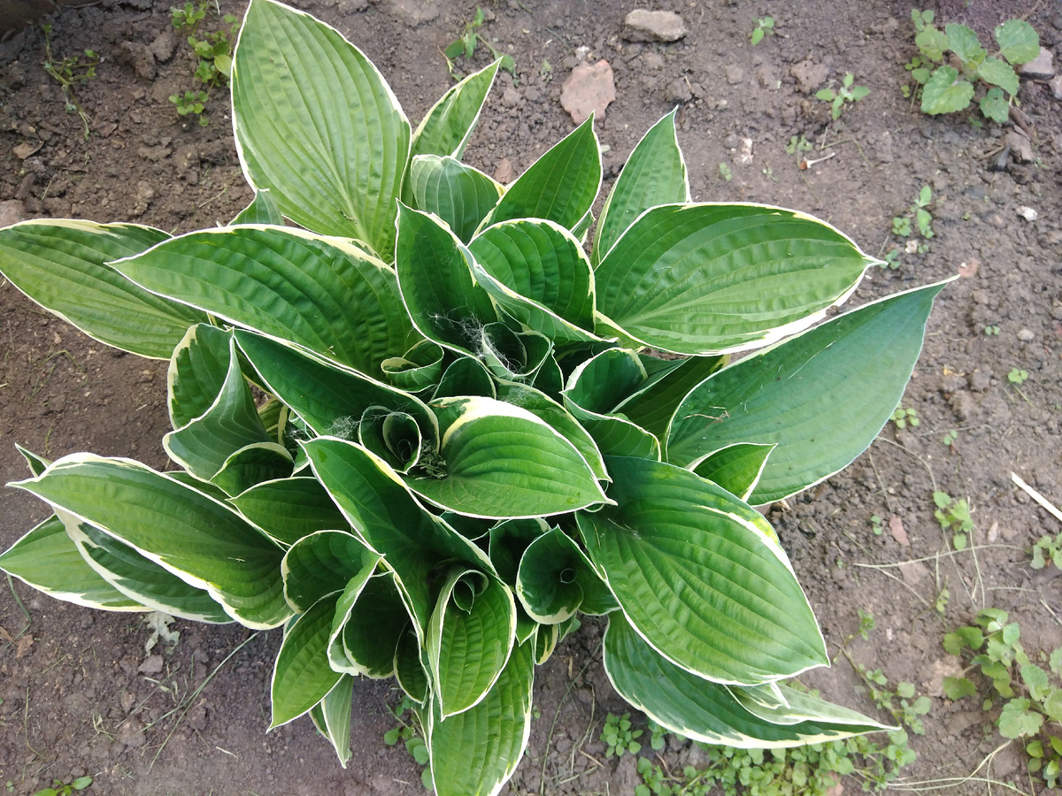 Знаю, что есть фанаты хост. Даже сад хост имеют. Я не отношусь к хоста с большим трепетом, но нравятся очень. К сожалению, мало мест, где хосты чувствовали себя вольготно. Всех лучше чувствует себя красавица зеленая с белыми ободками на листьях возле не очень удобного строения. Но там тень. Это одна из моих первых хост. Она еще не совсем распустилась. Позже покажется во всей красе. Названия я не запоминаю, метки не ставила, (Татьяна, (ЖЗЖ) я уже знаю, что можешь сделать справедливое замечание насчет, меток) попробовала по определителю узнать, какие у меня хосты. Три раза выдал: хоста Зибольда. Больше не стала интересоваться. За что любят хосты до фанатизма, не могу сказать. Цветение не восхищает, тем более, что долго не держится соцветие. Видимо, за листву. Листья хосты могут быть блестящими и матовыми, гладкими и фактурными, узкими, сердцевидными или округлыми, разными по цвету. Когда смотрю на сад хост у Светланы Евгеньевны, поражаюсь разнообразием хост. Цвет листьев от св