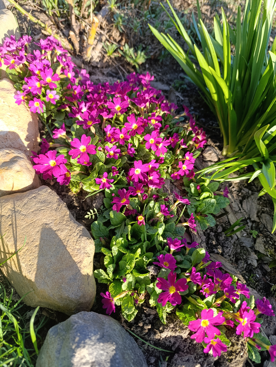 Добрый день все! Вот и проходит пора первых весенних цветочков, а я, со своими садовыми заботами, ещё вам их не показала. Ждала и потому, что было в эту весну всё какое-то долгоиграющее. Первые примулы расцвели в самом начале апреля. И до сих пор некоторые только расцветают. Названий я их не знаю, все приняты в добрые руки и куплены у бабушек. Некоторые уже разрослись приличными кучками. А некоторые- только привыкают ко мне. А эта вообще, новобранец. Во многих местах виднелись кучки мускариков, синеньких, самых обычных. Белые мускари на втором году значительно увеличили свою популяцию. А это моя новинка- махровые! Пушистая кучка приковывала взгляд. Удалось мне увеличить количество гиацинтов, многие высажены после 8 мартовской выгонки, уже за несколько лет адаптировались, вошли в нужный ритм. А это моя новинка-посажен осенью, коралловый. И наконец-то, я увидела у себя в саду нарциссы. Никак у меня с ними дружба не заводилась, не цвели и всё тут. И вот потихоньку их количество