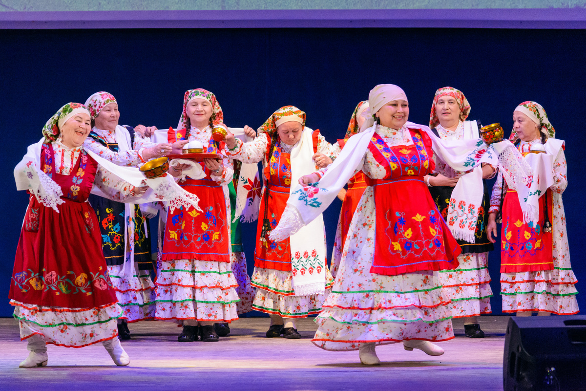 В Белорецк приехали творческие коллективы со всего Зауралья. В фойе Дворца культуры было шумно и суетно. Много людей в русский и башкирских костюмах.