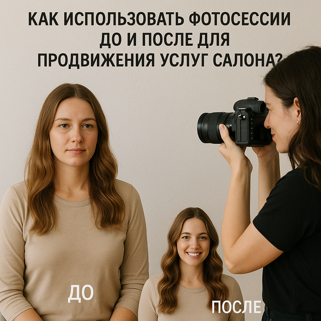 Фотосессии "до и после" — это отличный способ продемонстрировать качество ваших услуг и привлечь новых клиентов. Эти фотографии вызывают доверие и визуально показывают, как изменяются клиенты после процедур. Фотографии "до и после" позволяют наглядно продемонстрировать результат вашей работы. Это может быть особенно полезно для услуг, таких как стрижки, окрашивание волос, уход за кожей, наращивание ресниц или маникюр. Пример: Попросите клиентов разрешить вам сделать фотографии до и после процедуры и опубликовать их на сайте и в социальных сетях. Такие фотографии могут значительно повысить доверие к вашим услугам. Публикуйте фотографии "до и после" на ваших страницах в социальных сетях, таких как Instagram или Facebook. Это повысит интерес к вашему салону и привлечет новых подписчиков. Пример: Публикуйте фотографии с результатами работы ваших мастеров с хештегами, такими как #beautytransformation или #hairstylist, чтобы привлечь внимание к салону. Используйте фотографии, чтобы продемонс