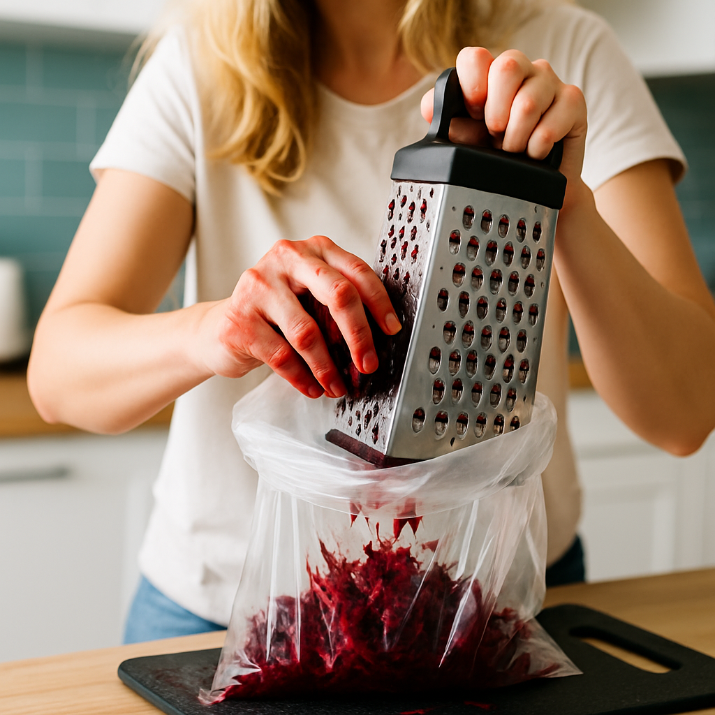 Свёкла — продукт коварный. Натрёшь — и будто в бою побывала. Решение есть: