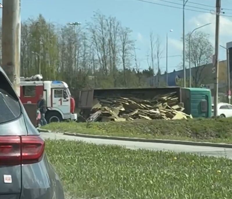 Груженый самосвал опрокинулся в крупном районе Петрозаводска