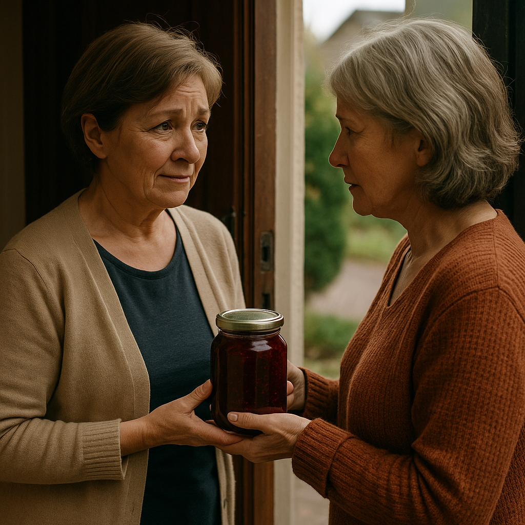 — Там какая-то женщина. С банкой… вроде бы варенья, — тихо сказала моя дочь, выглянув в окно. Я вышла в коридор и остановилась. Сердце застучало, как в юности. На пороге стояла Люда — моя младшая сестра.