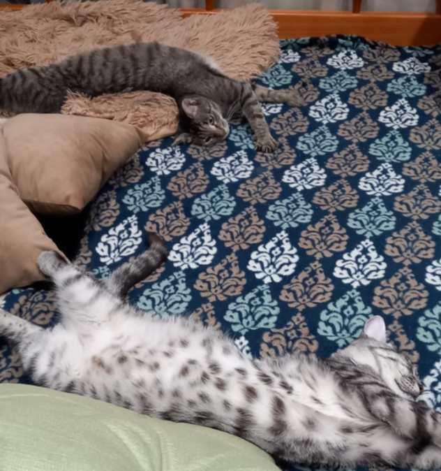 Привет от честнОй компании! Как видите, жизнь у некоторых удалась, в связи с этим можно и расслабиться) А вот согласитесь, кошачьи так умеют расслабляться, что слюной от зависти изойдёшься, наблюдая за их нирваной! Собственно, может и собачки так же могут кайфовать, просто я не видела - у меня никогда не было собак. Я кошатница до мозга костей, хотя к собакам тоже отношусь хорошо, как, впрочем и ко всем животным вообще. Марсик сидит со своим извечно недоумённым видом, глазки вопросительно вытаращил... Это я ему говорю: "Иди, Марсик, спать... Вся компания уже десятый сон видит, а ты весь в делах-заботах..." Да, у Марсика действительно было важное и ответственное занятие - он ловил муху на лестнице. Судя по тому, что он облизывался, когда я выглянула его позвать, охота оказалась успешной. Согласны ли вы со мной, друзья, что котикам идёт полнота? Разве не хочется погладить это тёплое, мягкое пузико? Меня оно прямо умиляет) А если бы вы ещё слышали, как он в этот момент похрапывает, восто
