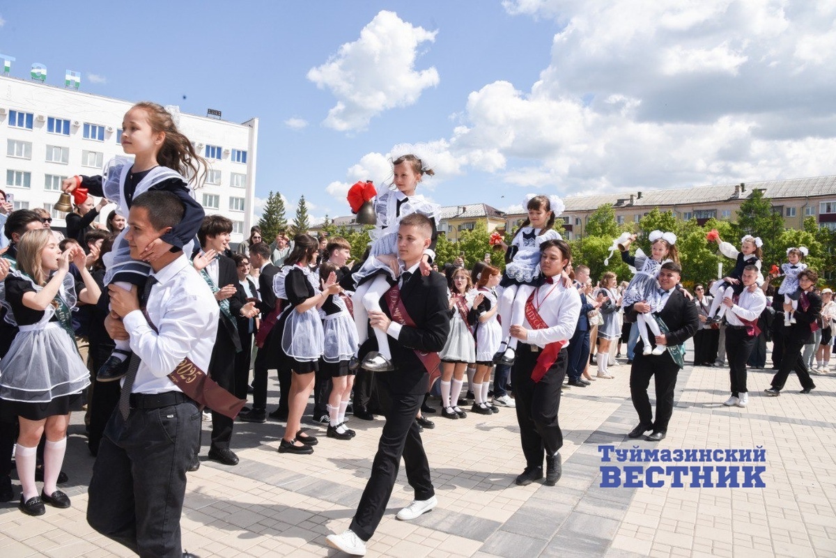 В Туймазах на площади Октября 11-классники станцевали прощальный вальс. В Туймазинском районе сегодня прозвучал последний звонок для 357 одиннадцатиклассников. Кроме того, в этом году девятый класс окончили 1711 юных туймазинцев. На торжественных линейках, которые прошли в каждой школе, ребят поздравили педагоги, родители, представители администраций района, города, сельских поселений, предприятий и организаций района и города. Глава администрации Туймазинского района Булат Мусин дал напутствие ученикам 11 и 9 классов городской школы №2. Здесь в «большую жизнь» отправятся в этом году 23 выпускника. Еще 101 ученик завершил обучение в девятом классе: часть из них тоже попрощается со школьными партами и перейдет в учебные аудитории ссузов. Ребята станцевали прощальный вальс. В их честь зажглись огни пиротехнического фонтана. В небо, символизируя новую жизнь с бесконечными возможностями, со школьного двора выпустили стаю белоснежных голубей. Одиннадцатиклассник Илья Гузаев и первоклассниц