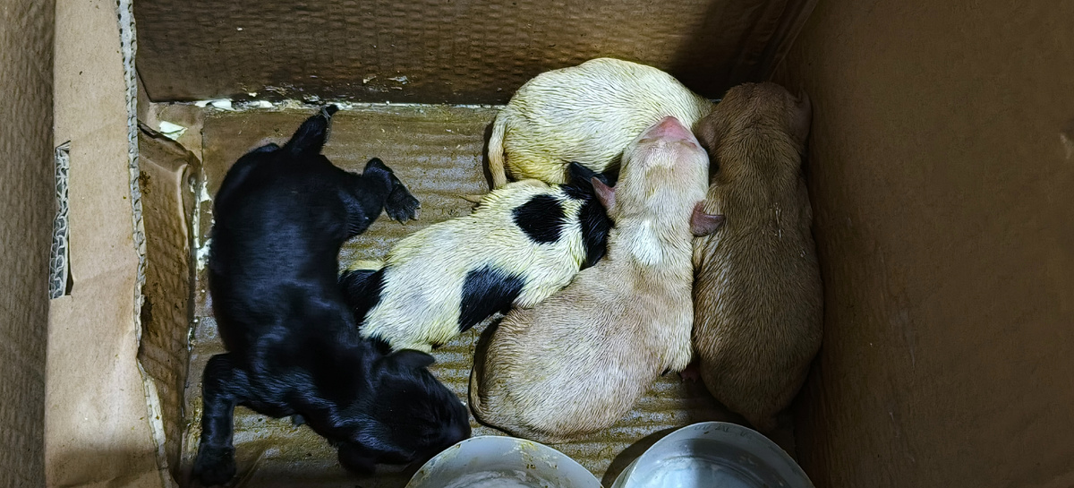 Кто не читал: мне вчера сосед спаниельку притащил. Приблудную. Но я сказала, что прямо сейчас ее взять к себе не смогу, надо сначала все оборудовать под животных. И что я собаку помыть не смогу. А у нее хвост и лапы задние были очень в чем-то испачканы. Он ее в итоге пристроил знакомому. Там дети есть, которые будут с ней играть и гулять. И есть щенок, с которым собака сможет дружить. Сегодня позвонили оттуда, где собачку до этого пару недель держали. С новостью о том, что ими были обнаружены щенки! Щенков изначально было шесть, один погиб. Сосед их забрал и сейчас везёт их к их мамке. Щенята холодные, это очень нехорошо в их возрасте. Я сказала, что чуть что - черный мой ;) Смешные и неожиданно для меня крупные. Я ж к кошачьим детям привыкла и из размерам. Щенков что лет не видела новорожденных. Носы у них очень смешные. Розовые. Короче, сейчас соседа погнала к мамке их отвозить. А то от гипотермии погибнут. Такое вот у нас тут внезапное происшествие.