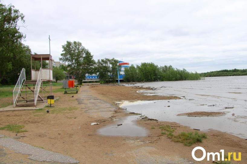 Сломанные ветки и куча мусора: в Омске затопило Первомайский пляж