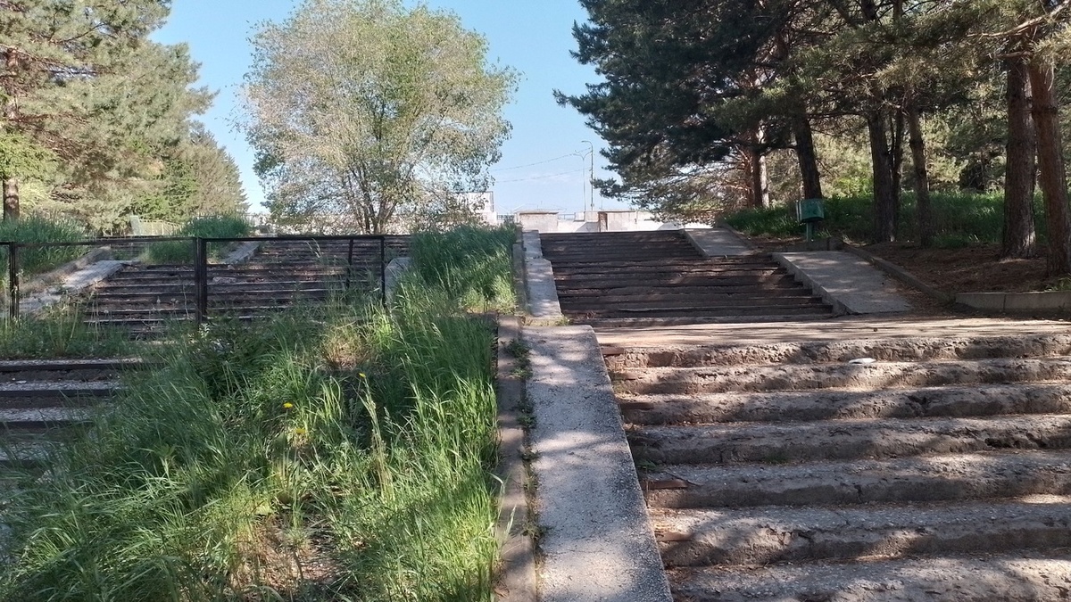 Изюминка парка, лестница к Иртышу, заросла травой и развалилась. Один из самых крупных и любимых парков Омска – Советский – словно уперся в своем развитии в рельеф. Главная фишка этого парка – знаменитая каскадная лестница, ведущая к берегу Иртыша и пляжу – находится в удручающем состоянии, и это негативно влияет на весь парк в целом. Посетители скучиваются в верхней части зеленой зоны, а чтобы спуститься вниз, вынуждены пользоваться «козьими тропками» либо ходить по пыльным склонам и лыжероллерной трассе. При прежнем мэре города Оксане Фадиной власти затеяли масштабную реконструкцию Советского парка на средства федеральной программы «Формирование комфортной городской среды». Работы велись в три этапа, каждый раз с большими проблемами. Поменяли входную группу – теперь конструкция представляет собой группу металлических колонн различной высоты, накрытых общей перголой, выполненной в виде волны, смонтировали освещение, заменили бордюры, тротуарную плитку, заасфальтировали тротуары. Парк