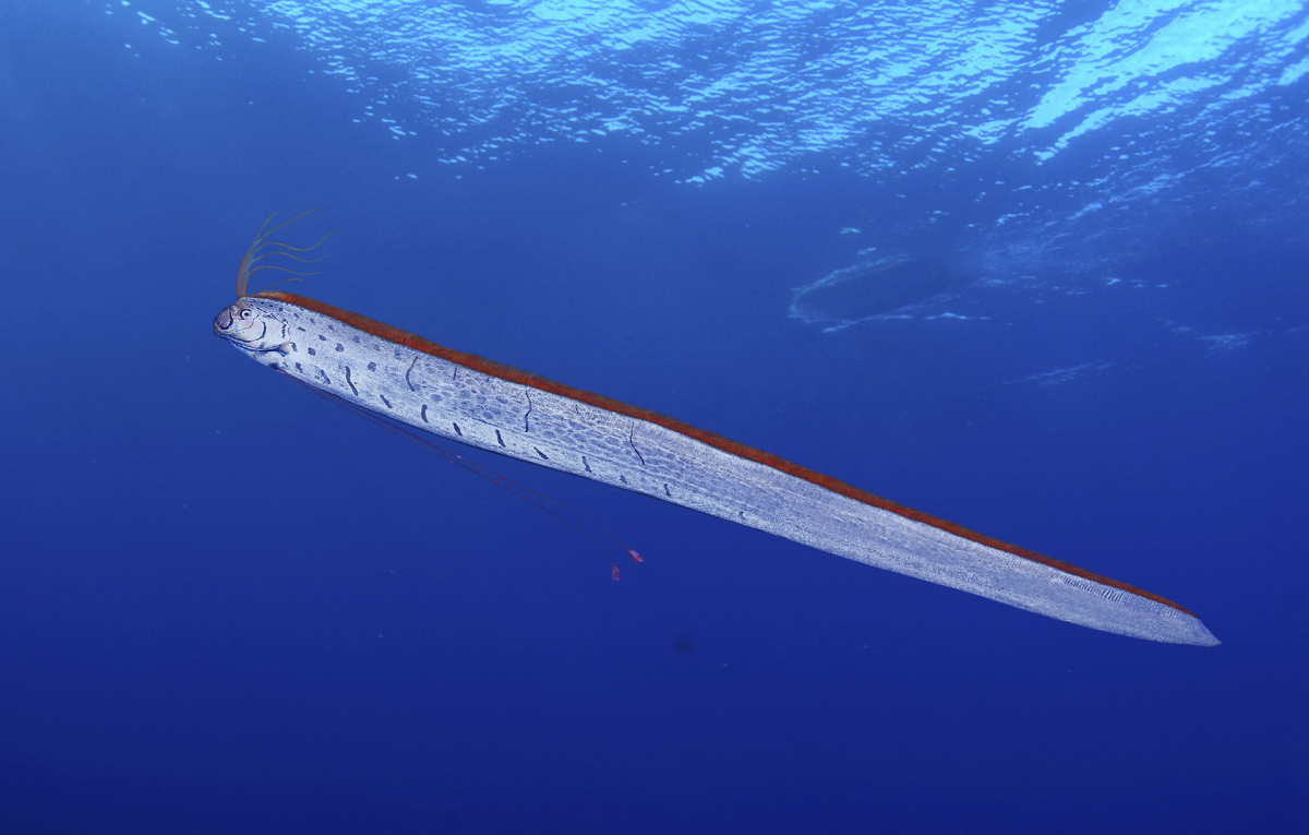 Сельдяной король (Regalecus glesne), – одна из самых необычных и загадочных морских рыб. Эта рыба относится к семейству ремнетелых и отряду опахообразных. Известна своим удивительным внешним видом и внушительными размерами, сельдяной король считается самой длинной лучепёрой рыбой в мире. Внешне сельдяной король выглядит как длинная, тонкая ленточная полоса, которая может достигать в длину до 11 метров, при этом тело почти прозрачно и слегка переливается в воде. У рыбы ярко окрашенный большой спинной плавник, напоминающий корону, что и дало ей название «король». Этот плавник начинается прямо у головы и тянется по всей длине тела. Голова сельдячного короля небольшая с большими глазами, что помогает ориентироваться в глубоководных условиях. Сельдяной король обитает в глубоких слоях океана, от 200 до 1000 метров глубиной. Его среда обитания – открытые водные пространства по всему миру, от тропиков до умеренных широт. Рыба ведёт скрытный образ жизни, и из-за глубоководного образа жизни