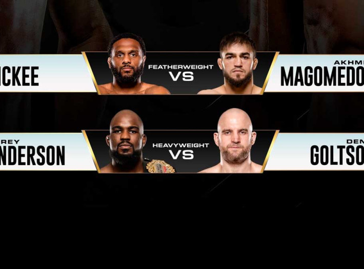 Поединки с участием российских бойцов Дениса Гольцова и Ахмеда Магомедовы были накануне добавлены в программу турнира PFL, который пройдет 19 июля в Кейптауне (ЮАР). Соперником Дениса Гольцова, являющегося победителем прошлогоднего турнира PFL в тяжелом весе, станет чемпион Bellator в полутяжелом весе Кори Андерсон. Бой пройдет в рамках тяжелой весовой категории. Андерсон в 2022 году дважды встречался с Вадимом Немковым: первый бой завершился без объявления результата, поскольку Немков не смог продолжить из-за рассечения, полученного в результате удара головой. В повторной встрече Андерсон потерпел поражение единогласным решением судей. После этого он одержал две победы, завоевав в последнем на данный момент поединке, состоявшемся в марте прошлого года, пояс чемпиона Bellator. Ахмед Магомедов встретится с вовзращающимся в свою прежнюю весовую категорию экс-чемпионом Bellator в полулегком весе Эй Джеем Макки, который после потери пояса в 2022 году в поединке против Патрисио Питбуля пере