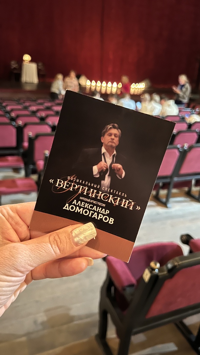 То, что Вертинский - неповторимый, не побоюсь этого слова, ВЕЛИКИЙ актер, знает каждый! Истинно русский! Любящий свою Родину и тоскующий по ней… Для меня Вертинский - это бабушкина пыльная пластинка🥹 Я думаю, что такая была в каждом доме прошлого века… Но для меня по-новому Александр Николаевич проявился именно в театральных постановках!!! Потому что его «ариетки» - это настоящий театр! Нина Чусова - режиссер спектакля «Вертинский» показала образ и голос «белого Пьеро» так, что не осталось в моём сердце ничего, кроме улыбки, слёз и любви… Народный артист России Александр Домогаров отвечал за голос, а Андрей Кислицин - за образ (артист CIRCUE DU SOLEIL и соведущий «Битвы экстрасенсов»). Именно их тандем, дополненный квартетом с «ламповым звучанием» Евгения Борца, показал нам каким была истинная душа Артиста с большой буквы!!! Лейтмотивом спектакля стали незабвенные песни и мемуары Вертинского. Александр Домогаров открылся для меня, как трогательный 🥹, талантливый и душевный