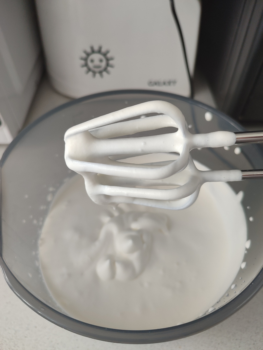 Влила холодные сливки в глубокую ёмкость и стала взбивать на единичке до загустения – у меня ушло на это минут семь.