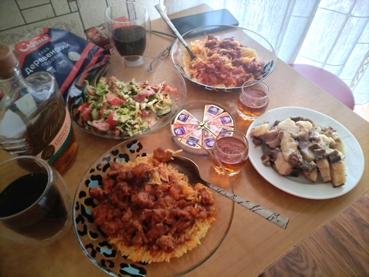 Вечером приехала к подруге. Быстро сообразили на стол. Ничего такого. Макарошки с гуляшом, салат, сыр плавленый. И конину отварную. Первый раз ела такое мясо. До этого никогда конину не пробовала. Подруга покупает её у знакомых уже в готовом виде. Очень вкусно! Но мясо с жиром. Даже не думала, что конина настолько жирная. Здравствуйте! Блог о повседневной жизни. О том, как я меняю себя и свою жизнь. Жила до 44 лет словно понарошку, теперь хочу жить по-настоящему. Поддержите в комментариях и подпиской на канал - это придаст мне сил и веры в успех! Присоединяйтесь ко мне кто хочет тоже изменить свою жизнь, будем меняться вместе, друг друга поддерживать, подбадривать и у нас всё получится! Получится снова научиться любить себя, свою жизнь и радоваться каждому дню! Мне 46 лет. Блогу 01.09.24 исполнилось 2 года. Но она приготовлена была настолько вкусно, что даже жир вкусный. Выпивали не коньяк, а коньячную настойку со вкусом шоколада. Она по градусам меньше, чем коньяк. Да и вкуснее)