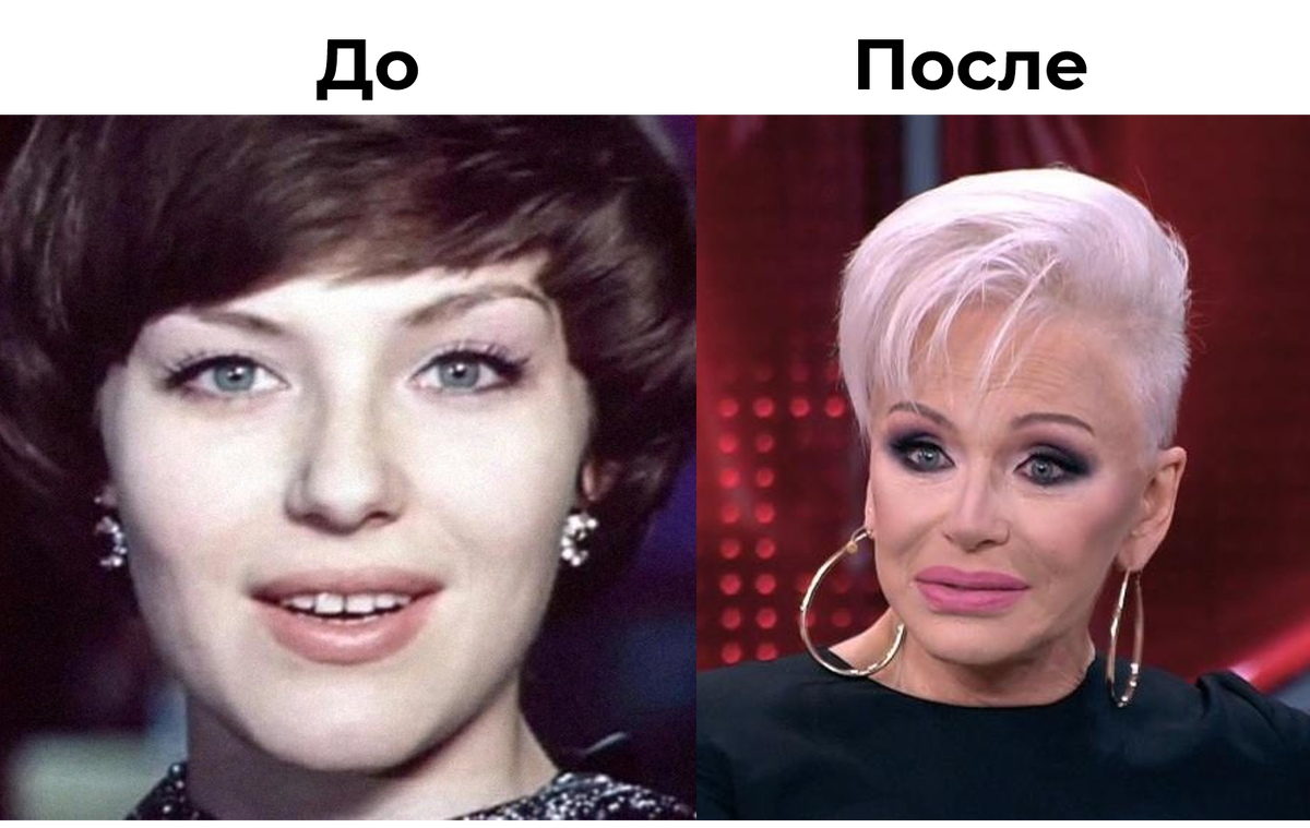 В 90-х пластическая хирургия стала модным трендом среди звёзд — но не все эксперименты оказались удачными. Некоторые артисты изменились до неузнаваемости, и даже фанаты недоумевали: «Это точно они?" Вспоминаем самые резкие преображения, которые до сих пор вызывают споры. Что изменилось: губы, нос, овал лица, предположительно — круговая подтяжка.