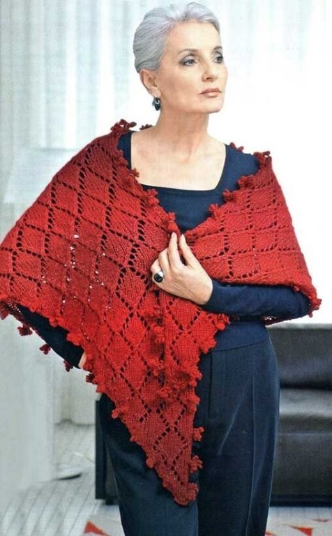 Если вы любите красный, то такая шаль сделает вас дачной королевой! Узор несложный, ведь все внимание - цвету! Узор очень простой, смотрите сами: А выбрать подходящую пряжу вам помогут публикации: