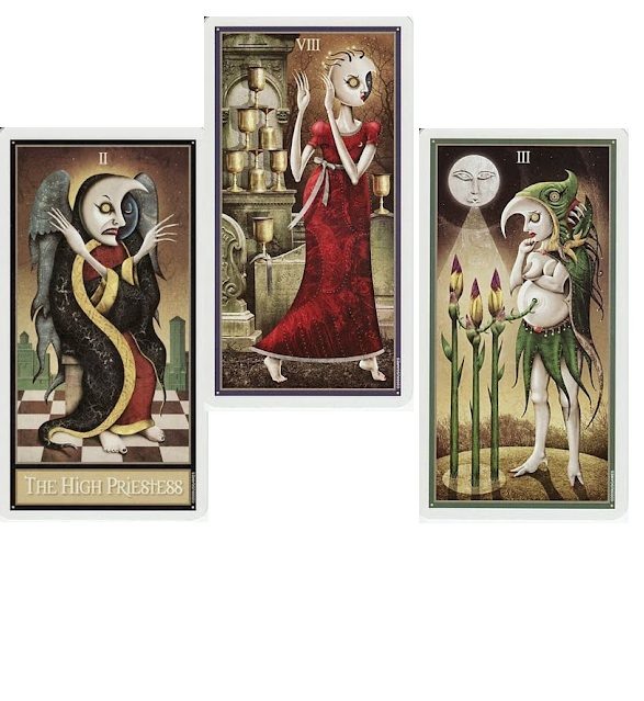 На самом деле существует несколько типов триплетов и каждый из них имеет свою схему и свою особенность прочтения. Поэтому можно с уверенностью говорить о том, что с помощью всего лишь трех карт можно получить точную и исчерпывающую информацию. Плюс к этому, если вы используете оракульную колоду, можно подключить к трактовке расклада интерпретацию самих изображений. Чаще всего принято акцентировать свое внимание на центральной карте. Если фигура на центральной карте смотрит прямо на вас или само изображение статично, а персонажи на боковых картах словно движутся от центра, можно говорить о том, что центральная карта - это причина создавшейся ситуации, а карты справа и слева указывают на несколько путей развития проблемы. Если же наоборот – энергия боковых карт движется к центру (смотрим на фигуры, изображенные на этих арканах), то можно предположить, что несколько направлений развития ситуации словно соединяется в один поток. И тогда центральная карта будет указывать не на истоки, а на