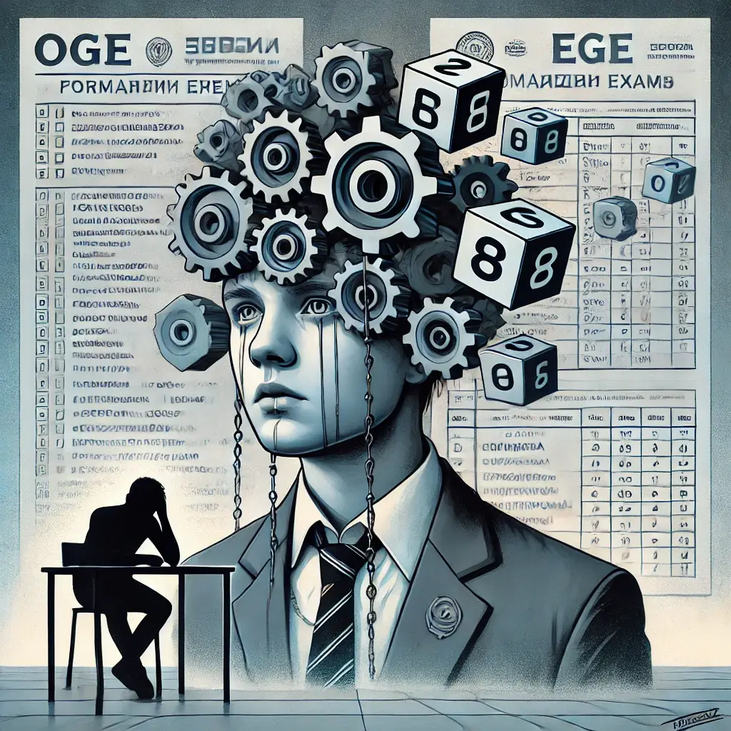 И главная причина не так очевидна, как может подуматься читателю. Современная образовательная система в России, как и во многих других странах 🌍, характеризуется высокой степенью формализации и стандартизации 📋. Такие экзамены, как ОГЭ и ЕГЭ 📝, являются ярким примером того, как жёсткие правила, инструкции и регламенты 📑🔒 оказывают мощное давление на психику 🧠💥 и разрушающий эффект для сознания учащихся и педагогов 👩🎓👨🏫. На первый взгляд 👀, правила и формальности нужны, чтобы обеспечить единообразие и справедливость ⚖️ процедуры оценки знаний и навыков 📚. Формализация позволяет минимизировать субъективность оценки 🤖, упрощает контроль и повышает прозрачность образовательного процесса 🔍.