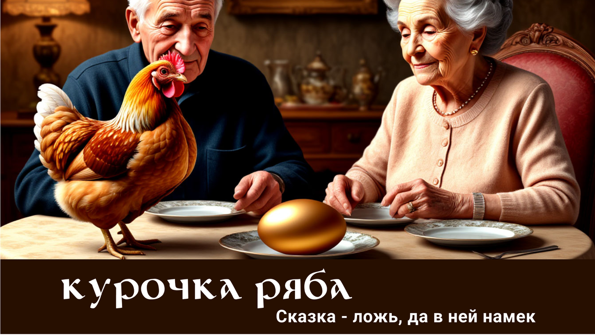 🥚 Курочка Ряба Взрослый взгляд на Рябу с яйцами, Деда с бабкой и… Мышь с хвостом. Сказка, которую мы помним с детства, — оказывается вовсе не о том, что мы думали. Это история утраты, трансформации и обретения настоящего "Я". Сказка — ложь, да в ней намёк. Эталонный текст сказки (по памяти, в нас она вошла «с молоком матери»): Жили-были Дед да Баба. Была у них Курочка Ряба. Как-то снесла им курочка золотое яичко. Дед бил-бил — не разбил. Баба била-била — не разбила. Мышка бежала, хвостиком махнула, яичко упало и разбилось. Дед плачет, Баба плачет. А курочка кудахчет: «Не плачь, баба. Не плачь, дед. Снесу вам новое яичко — не золотое, а простое.» И снесла им курочка новое яичко — не золотое, а простое. Вот как можно на это взглянуть. Курочка снесла золотое яичко. Это первая стадия “Я” — бытовое, привычное, живущее по инерции. Красивое, блестящее. Люди не пытались его разбить — да и зачем? Просто жили. Били — не в смысле «хотели разбить», а прикладывались, как в жизни бывает. — Работа,