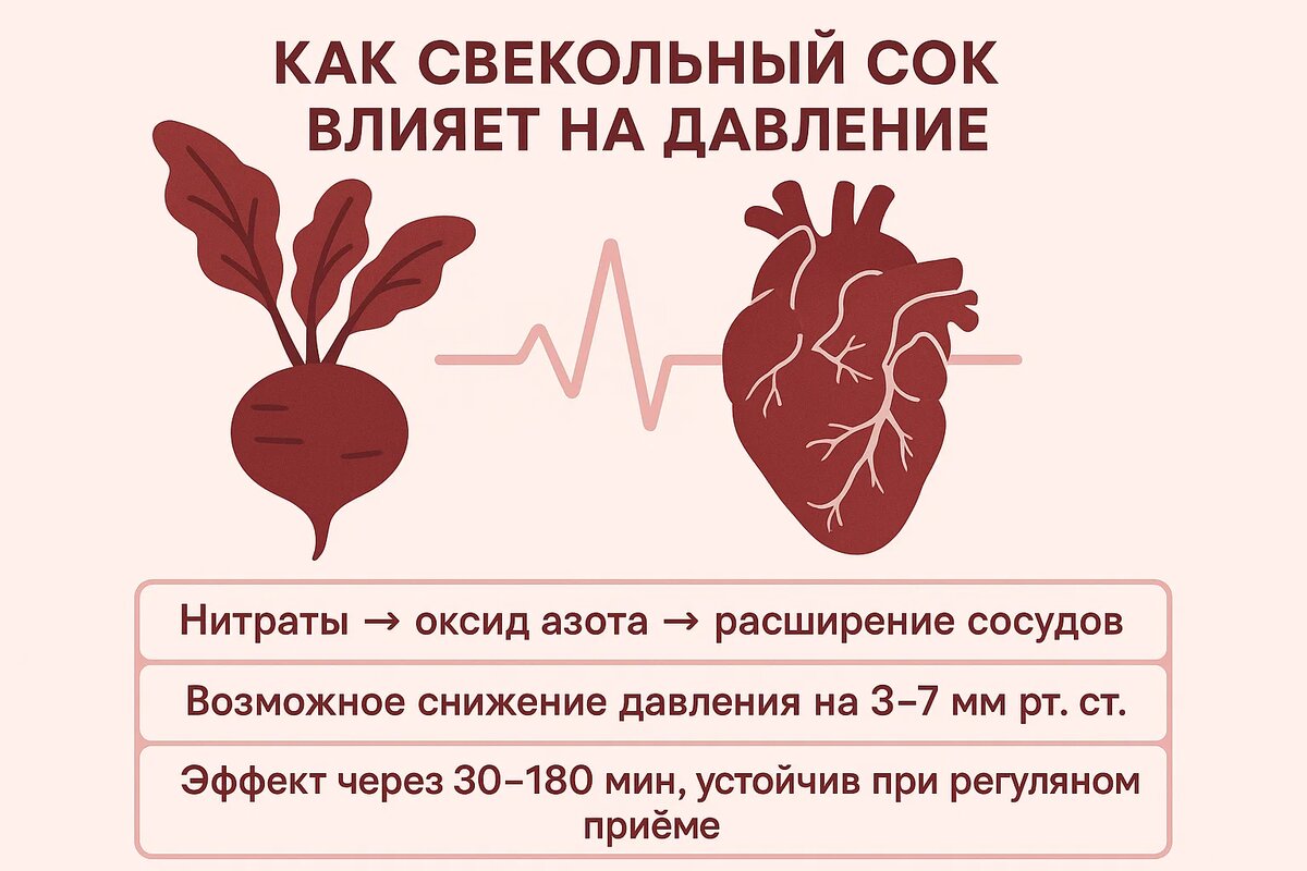 "Доктор, а можно ли как-то снизить давление без таблеток? Может, есть что-то натуральное?" И я прекрасно понимаю это стремление — ведь хочется использовать всё, что может помочь, особенно если это просто, доступно и безопасно. Один из таких продуктов, о котором мы всё чаще говорим на приёме — свекольный сок. Не просто потому, что он «полезный» (как мы привыкли слышать в общих рекомендациях), а потому, что за ним стоит всё больше научных данных. Я хочу рассказать вам, почему именно свекла может быть полезна при гипертонии, как её правильно включить в рацион, чего стоит остерегаться и что важно обсудить с врачом до начала её регулярного употребления. Если вы стремитесь поддерживать давление под контролем естественными методами — этот материал будет вам полезен. ⚠️ Важно помнить: свекольный сок не является заменой лекарственной терапии при гипертонии.