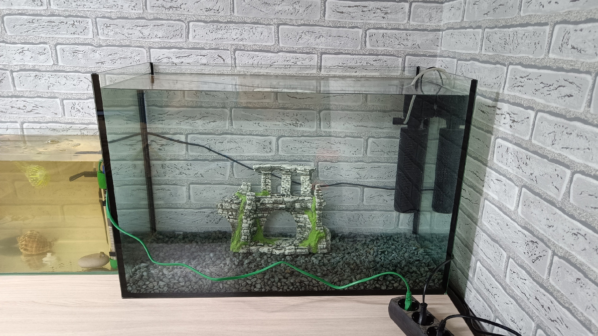 Наливаю в аквас только дождевую воду. Под сливы ставлю ведра, потом 2 раза процеживаю через синтепон. Все живы, никто не жаловался и все размножаются. Трава растёт хорошо, каждый месяц сдаю в магазин.
