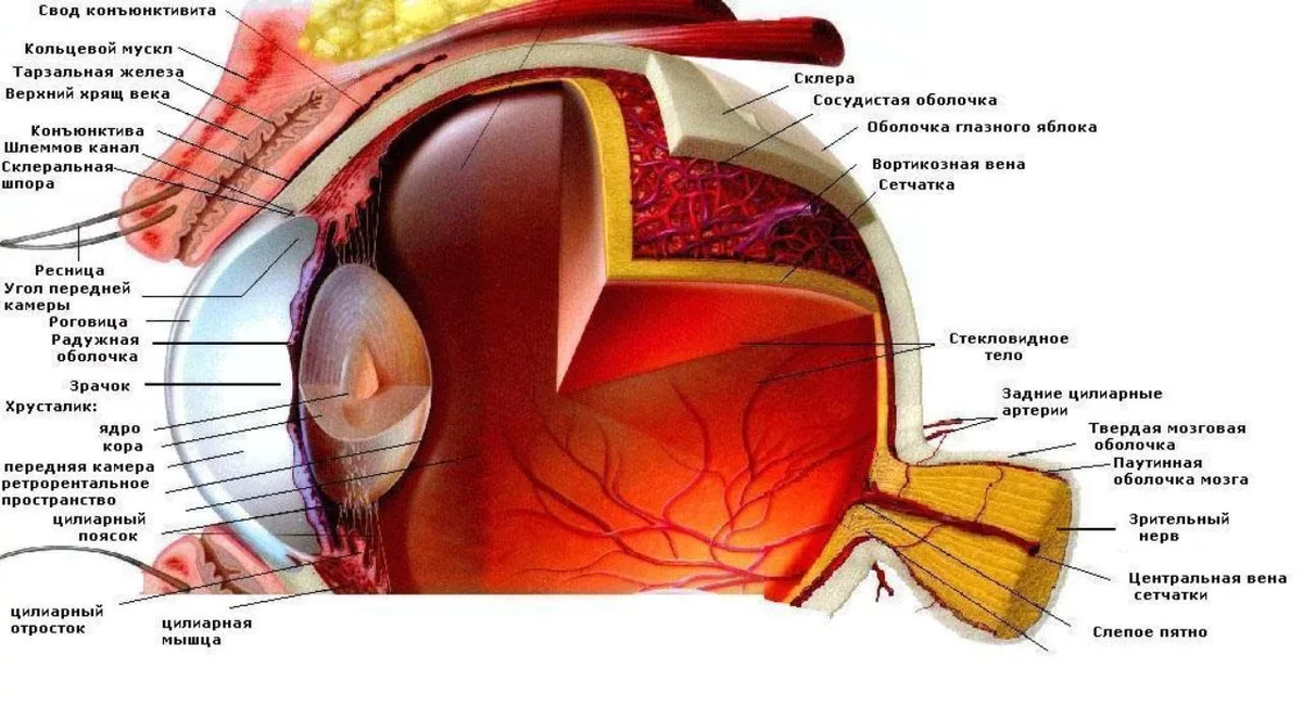 Глаз человека — сложный зрительный орган, который отвечает за восприятие света и формирование изображений. Некоторые структуры, входящие в его состав: