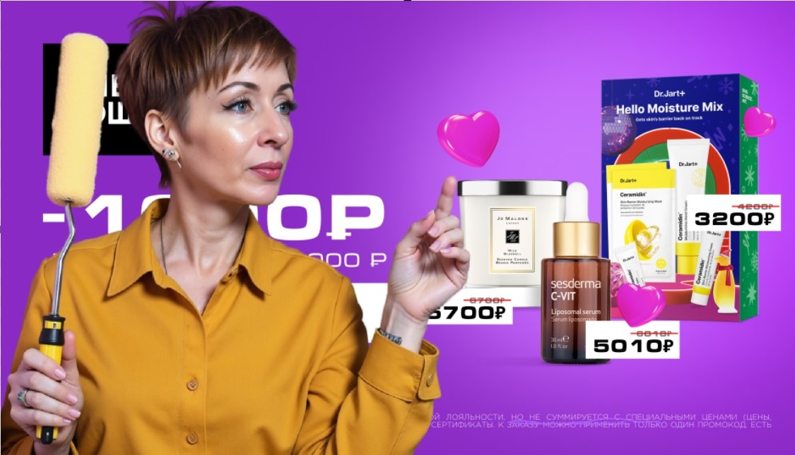 Обращаю ваше внимание — скидка на любую по счету покупку, не на первую, то есть не для новых клиентов. Действует на покупки от 6 000 рублей на сайте, в магазине или в мобильном приложении.