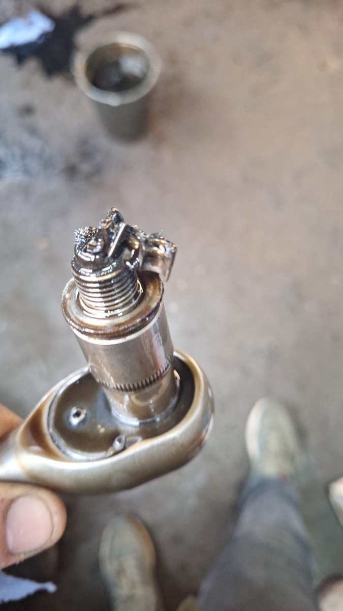 При детальном осмотре оказалось, что это результат предыдущего ремонта в другом сервисе. Полгода назад клиент менял там маслосъёмные колпачки, и мастера делали эту работу без снятия головки блока цилиндров — прямо через свечные отверстия.