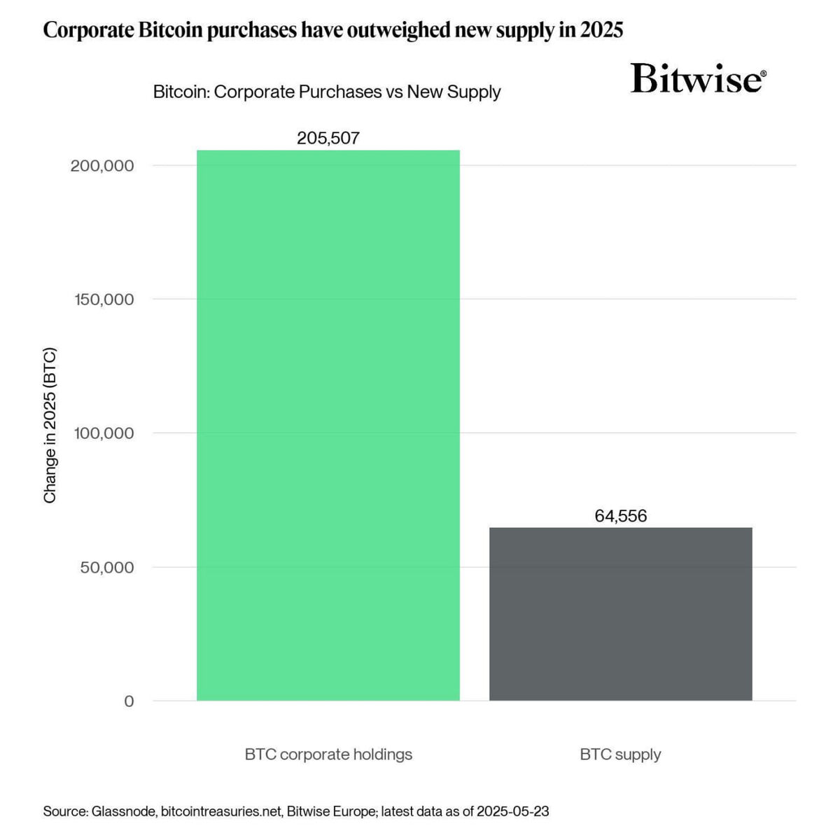 πΊ ΠΠ° Π΄Π°Π½Π½ΡΠΉ ΠΌΠΎΠΌΠ΅Π½Ρ Π² 2025 Π³ΠΎΠ΄Ρ ΠΎΠ±ΡΠ΅ΠΌ ΠΊΠΎΡΠΏΠΎΡΠ°ΡΠΈΠ²Π½ΡΡ Π·Π°ΠΊΡΠΏΠΎΠΊ Π±ΠΈΡΠΊΠΎΠΈΠ½Π° Π±ΠΎΠ»Π΅Π΅ ΡΠ΅ΠΌ Π² ΡΡΠΈ ΡΠ°Π·Π° ΠΏΡΠ΅Π²ΡΡΠ°Π΅Ρ ΠΎΠ±ΡΠ΅ΠΌ Π½ΠΎΠ²ΠΎΠ³ΠΎ ΠΏΡΠ΅Π΄Π»ΠΎΠΆΠ΅Π½ΠΈΡ BTC.