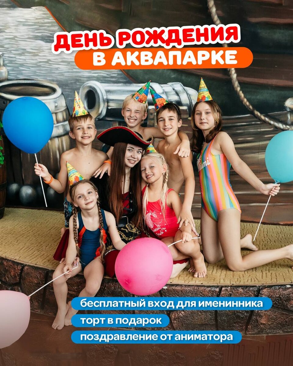 По промокоду «ИМЕНИННИК» для детей до 13 лет включительно посещение аквапарка в день рождения БЕСПЛАТНО!