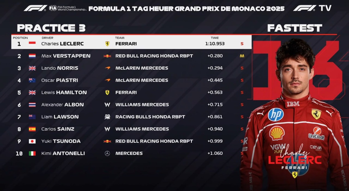 Результаты третьей практики гран-при Монако: