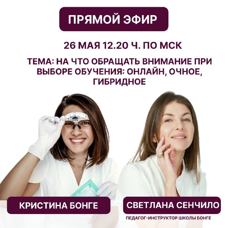 Наш марафон эфиров набрал невероятные обороты ❤️🔥 🗓26 мая в 12.20 ч. здесь на канале проведем эфир с педагогом-инструктором школы Кристины Бонге - Светланой Сенчило, г. Самара. Поговорим о том, на что обращать внимание при выборе обучения. Разберем нюансы очного, онлайн и гибридного обучения ✨ Будет очень полезный эфир, не пропустите ❤️🔥