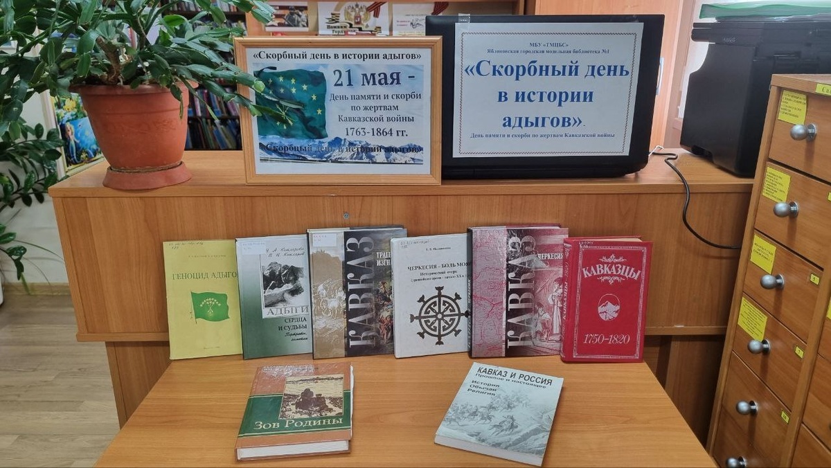 21 мая весь черкесский мир отмечает День памяти и скорби по жертвам Кавказской войны. Столетняя война, которая принесла страдания и тяготы адыгскому народу одна из самых трагичных периодов в истории Кавказа. Она закончилась 21 мая 1864 года. В ознаменование этой даты в Яблоновской городской модельной библиотеке № 1 была организована выставка-просмотр «Скорбный день в истории адыгов». На выставке экспонировались книги и материал по теме.