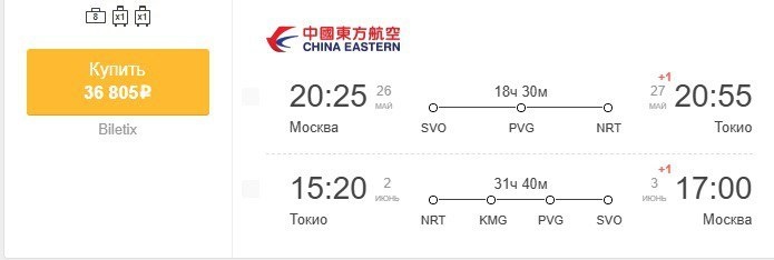 ✈️Москва - Токио (Япония), с пересадками,туда и обратно, с багажом за 36800 рублей