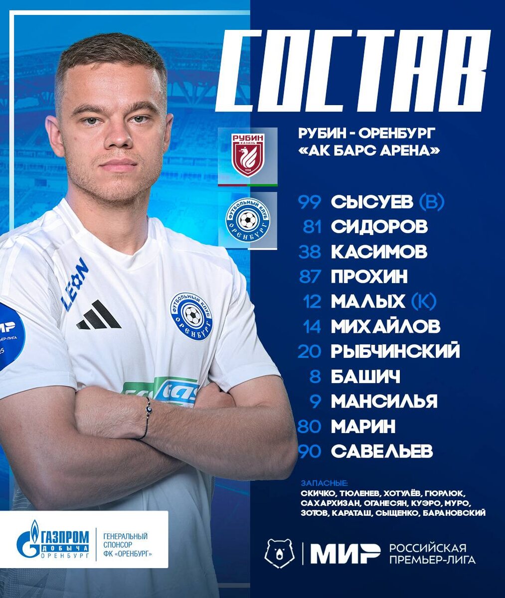 Начнем игру с «Рубином» в таком составе