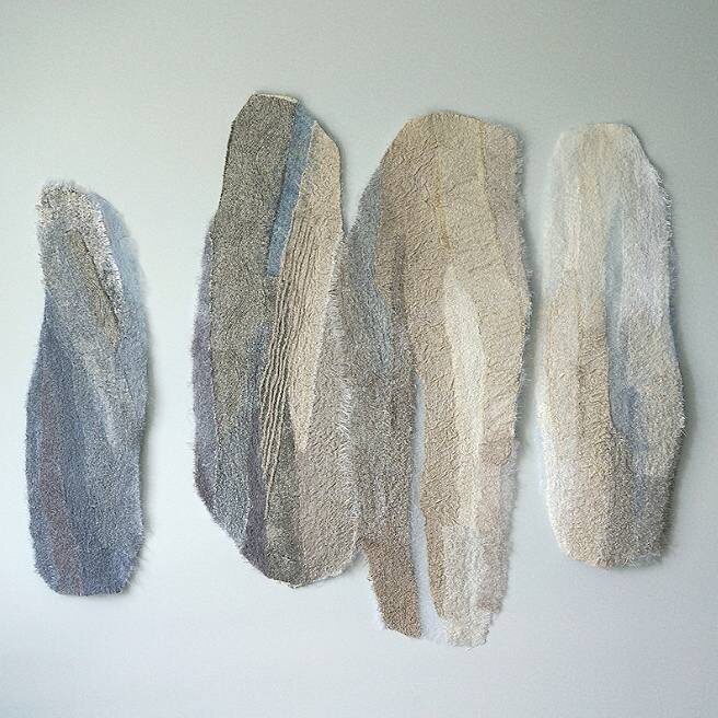 Делимся находкой - текстильный художник Наташа Косовец. Очень самобытные предметы, воздушные, цвета приглушенные и приятные, возникает желание прикоснуться) Такие работы, определенно, добавят фактурности и тактильности интерьеру. Каждая работа ассоциативна и рассказывает истории. После окончания училища автор работала графическим дизайнером, текстилю посвящала свободное время. Со временем текстиль стал основным занятием. Работает в иглопробивной технике (фильцевание), при этом способе нижний слой ткани пробивается через верхний специальной иглой с засечками, волокна перемешиваются между собой и образуется единое полотно. В работе обычно использует отходы от производства штор и портьер. Для достижения нужной текстуры комбинирует органзу, шерсть, шелк, окрашенные вручную ткани и волокна. Часто воспоминания о пейзажах и детские переживания для нас яснее, чем то, что мы пережили вчера. Но время играет свою роль с ландшафтом и с нашим собственным восприятием этого места. Я пытаюсь найти