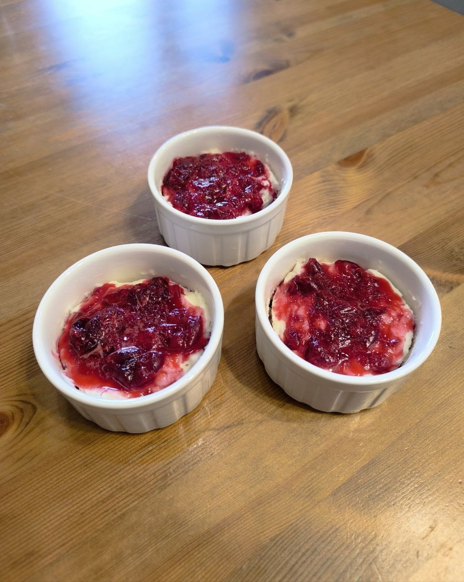 Творожный десерт с вишней. Ингредиенты: Творог 0% - 100г Рикотта - 100г Мука рисовая - 30г Яичный белок 1 яйца - 38г Вишня без косточек - 44г Ванилин, сахзам, разрыхлитель Смешать творог, рикотту, яичный белок, муку, ванилин, разрыхлитель и сахзам. Разложить массу по формочкам и поставить в микроволновку на 5 минут. Вишню пробить блендером и смешать с сахзамом. Выложить вишню сверху на готовый десерт. Кбжу на всю порцию: 375 ккал/32 г белков/11г жиров/36г углеводов #десерт #творог #выпечка #завтрак #рацион