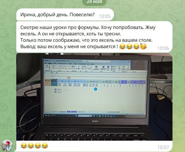 Ученица прислала 😂 Неделька выдалась непростой. Работа с клиентами, приколы от ВБ, подготовка к эфиру, подготовка к конференции, работа с учениками... 🙈 А у вас как дела? ❤️ — всё в штатном режиме 🙈 — была задача выжить