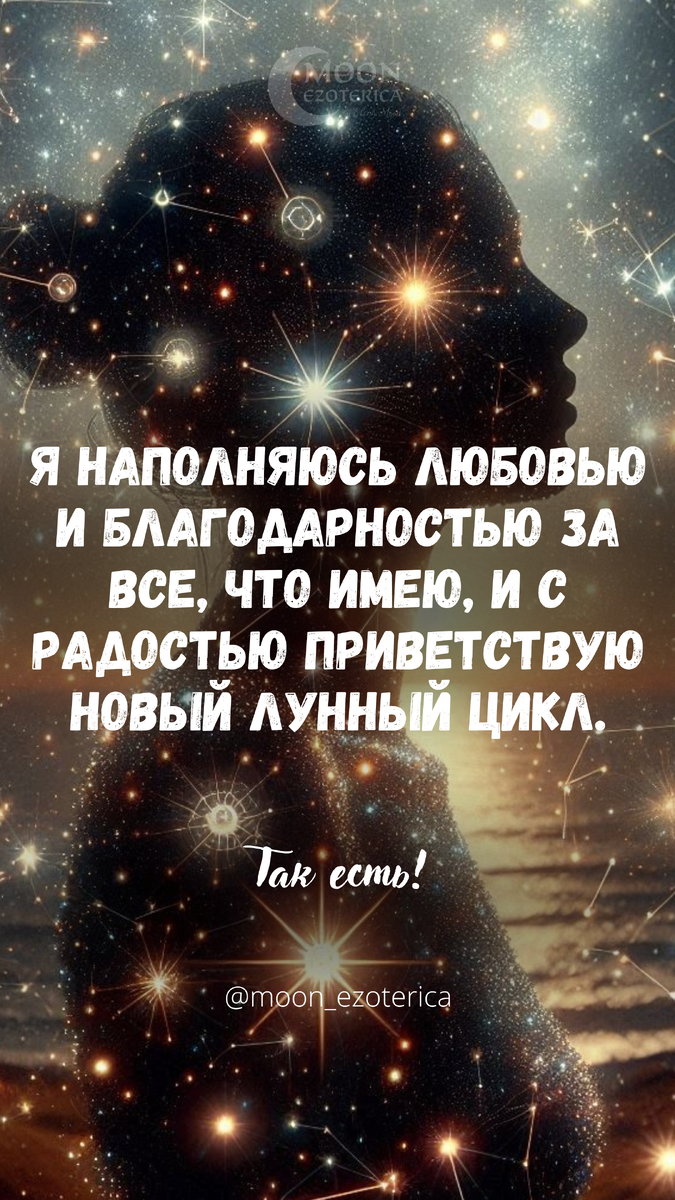 30 лс с 27.05 3:27 до 27.05 6:01 мск 1 лс с 27.05 6:02 до 28.05 4:06 мск Луна в Близнецах ♊️ Новолуние 27.05 в 6:02 мск 🌑 💡Символ - светильник, лампада. 1 лунные сутки – очень хороший светлый день, в этот период определяется то, что будет развиваться в ближайший месяц. Это время анализа и планирования, но не для активных действий, мы ещё только начинаем новый цикл, и сил у нас недостаточно. Первый лунный день – самый лучший момент для построения планов и проектов, которые пока стоит держать при себе. Продумайте всё в деталях и как можно ярче себе представьте. Замыслы этого дня имеют высокие шансы на то, чтобы всё задуманное происходило легко, естественно, без напряжения. 🔸ПРАКТИКИ: Полезно выполнять визуализации, аффирмации, работать с картой желаний, записать на бумаге ваши планы и желания на месяц . Перед мысленным взором желаемые события должны предстать во всех нюансах и деталях, так, чтобы вы могли максимально их ощутить. Думайте о будущем как о чем-то уже свершившемся. И