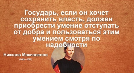 Работа флорентийского философа Никколо Макиавелли «Государь», написанная им в 1513 году, по-прежнему актуальна и является фундаментальной идеологической основой всего современного политического истеблишмента.