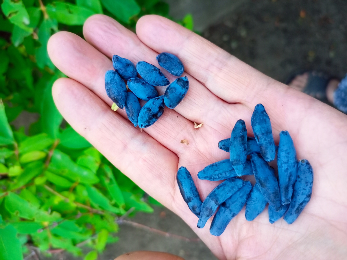 Единственный минус у жимолости съедобной, так это осыпаемость ягод после созревания. Подходишь к кусту, а под ним ягод, ну словно голубой ковёр. Но я этот недостаток перевела в достоинство. Под кустом во время созревания ягод растилаю клеенку, потом с неё собираю.
