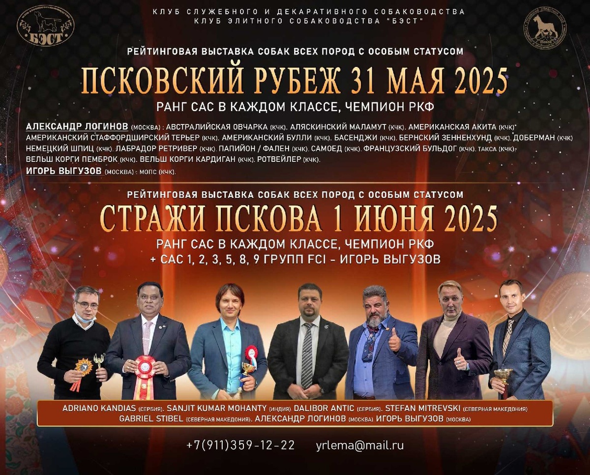 ⏰ 31 май - 1 июн (7д) 🏛 #Псков #Россия #Выставка 🐶 Выставка собак: ПСКОВСКИЙ РУБЕЖ 25 🏆 Клуб служебного и декоративного собаководства Контакты организаторов здесь: 🌐 https://www.petsman.ru/vystavki-sobak.php?mesto=54-pskov «СЕРЕБРЯНЫЙ ОШЕЙНИК» (шоу ЧЕМПИОНОВ) НАЦИОНАЛЬНАЯ ВЫСТАВКА ВСЕХ ПОРОД РАНГА САС-"ЧЕМПИОН РКФ" С ОСОБЫМ СТАТУСОМ «ПСКОВСКИЙ РУБЕЖ 25» ШОУ БЕБИ И ЩЕНКОВ АВСТРАЛИЙСКАЯ ОВЧАРКА ПСКОВА АЛЯСКИНСКИЙ МАЛАМУТ ПСКОВА АМЕРИКАНСКАЯ АКИТА ПСКОВА АМЕРИКАНСКИЙ БУЛЛИ ПСКОВА АМЕРИКАНСКИЙ СТАФФОРДШИРСКИЙ ТЕРЬЕР ПСКОВА БАСЕНДЖИ ПСКОВА БЕРНСКИЙ ЗЕНЕНЕНХУНД ПСКОВА ВЕЛЬШ КОРГИ КАРДИГАН ВЕЛЬШ КОРГИ ПЕМБРОК ДОБЕРМАН ПСКОВА НЕМЕЦКИЙ ШПИЦ ПСКОВА РОТВЕЙЛЕР ПСКОВА САМОЕДСКАЯ СОБАКА ПСКОВА ФРАНЦУЗСКИЙ БУЛЬДОГ ПСКОВА ЛАБРАДОРЫ ПСКОВА МОПС ПСКОВА ПСКОВСКИЙ ПАПИЛЬОН ТАКСЫ ПСКОВА НАЦИОНАЛЬНАЯ ВЫСТАВКА ВСЕХ ПОРОД РАНГА САС-"ЧЕМПИОН РКФ" С ОСОБЫМ СТАТУСОМ «СТРАЖИ ПСКОВА 25» САС 1 ГР САС …