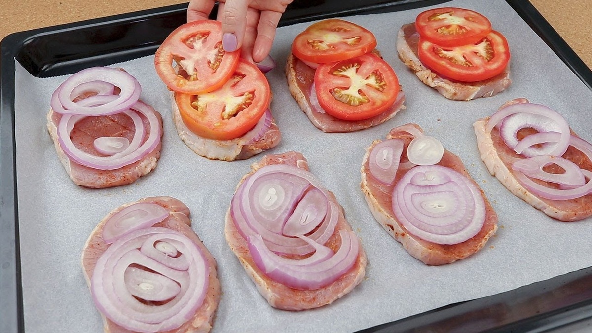 И уложите поверх лука — они дадут сочность и аромат. Отправьте в разогретую до 190°C духовку на 45 минут. Этого времени достаточно, чтобы мясо стало мягким и пропиталось вкусом овощей и специй.