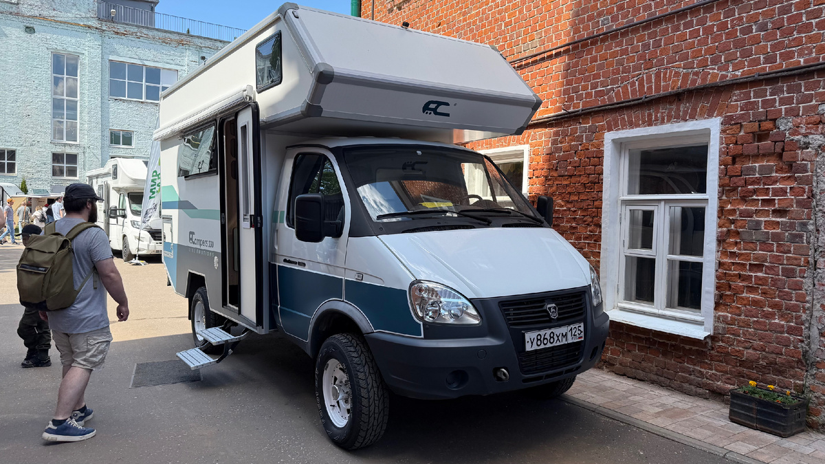 Автодом построен по индивидуальному заказу, но в данный момент продается. Цена в 5,5 миллионов рублей кажется не такой уж страшной, если учитывать, что это проходимый автомобиль с дизельным двигателем и со всеми удобствами на борту. В жилом модуле есть кухня с газовой плитой, раковиной, ящиками для посуды и продуктов. Есть холодильник и посудомоечная машина. Напротив кухни туалетная комната со всеми удобствами. Биотуалет кассетный с внешним обслуживанием, душевой поддон. Умывальник с вытяжной лейкой для душа. Пространство нормальное для человека средний комплекции. Запас воды 100л, установлен комби-обогреватель по типу Truma со встроенным бойлером. Сзади двухъярусные кровати. Которые выдержат и взрослых, но в движении на них находиться нельзя. За кабиной располагается гостиная на четверых. Кресла по направлению движения оборудованы ремнями безопасности, напротив них обычный диван на двоих. Над гостиной полки для личных вещей, в потолке люк 40х40. Над кабиной двуспальная кровать. Таки