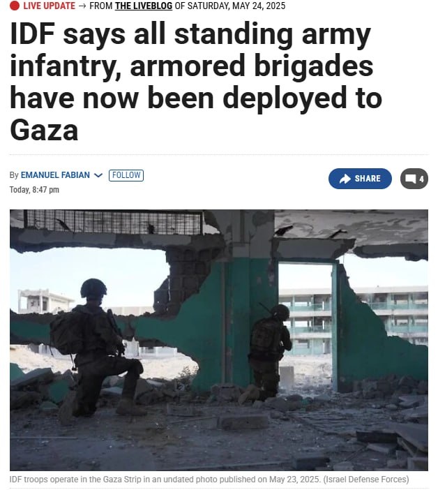 Израильская армия развернула в секторе Газа все имеющиеся в ее составе регулярные пехотные и бронетанковые бригады, — The Times of Israel. Заря | Новости - Подписаться