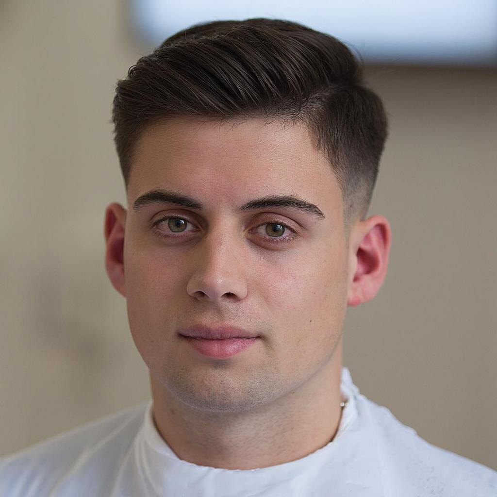 В результате получается ровная поверхность головы с короткими волосами, создающая стильный и ухоженный образ.