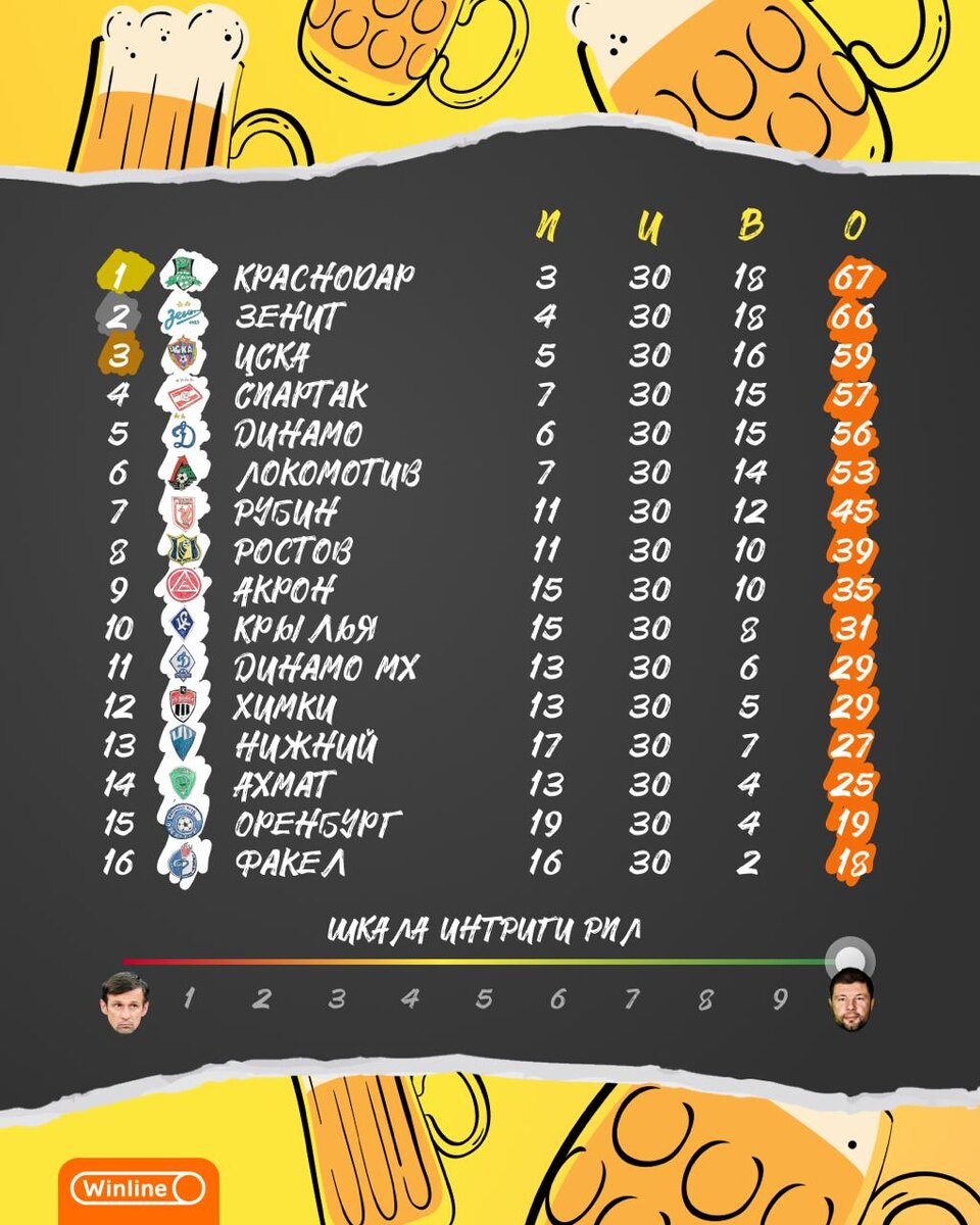Краснодар — чемпик, Факел уходит на повышение. По Оренбургу пока непонятно, будем за стыками следить. А на каком месте твой любимый клуб?