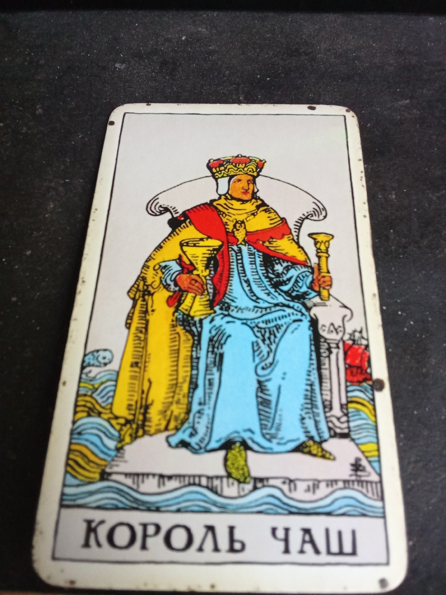 Король Кубков - Символ протянутой руки помощи и сострадания. Возможно сегодня вы получите моральную поддержку от вашего родного отца или другого близкого родственника, это будет разговор без обид и упрёков, вам просто дадут хороший совет или выслушают с пониманием и сочувствием. Кто бы не хотел вам помочь сегодня , не пренебрегайте предлагаемой помощью вероятно судьба послала вам этого человека для поддержки и утешения. Может быть случиться так что в решении проблем нужно будет действовать как - то креативно ,экспромтом, эксперементируя на ходу, отталкиваясь от привычных шаблонов и стандартов. Как бы то не было не позволяйте своим эмоциям овладеть вами, излишняя эмоциональность лишь навредит вам. Действуйте полагаясь лишь на свою интуицию и хладнокровие, Как бы не протекал сегодня день не принимайте все близко к сердцу.Держите себя в руках.