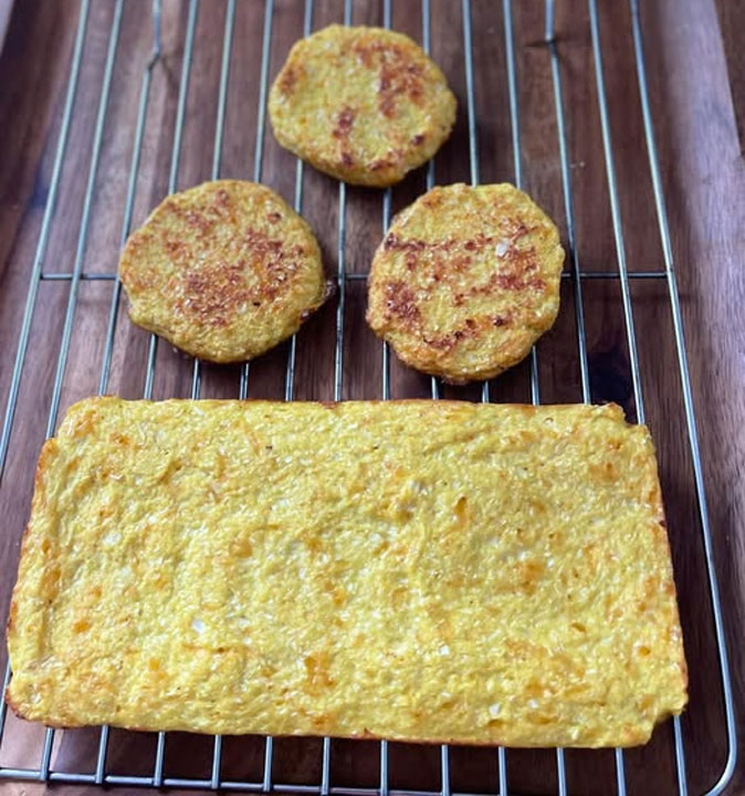 ✔ Цветная капуста - 450 г; ✔ Лук зелёный - 25 г; ✔ Яйца - 3 шт.; ✔ Куркума – ¼ ч. л.; ✔ Сушеный чеснок – ½ ч. л.; ✔ Сыр - 50 г; ✔ Мука кокосовая - 3 ст. л.; ✔ Разрыхлитель – 1/4 ч. л.; ✔ Соль – по вкусу. Цветную капусту натереть на мелкой терке или измельчить в блендере. Смешать с остальными ингредиентами, выложить на застеленный пергаментом противень в виде лепешек или основы для пиццы. Выпекать в разогретой духовке минут 20 при температуре 180 градусов. Из этого количества у меня получилось 5 шт. лепешек и 2 небольших основы для пиццы, которые я отправила в морозилку. КБЖУ на 100 г - 93/6,2/5,6/5,1. Рецепт на странице Автор рецепта – Ayash Strickland Расчёт КБЖУ сделан с помощью Telegram-чат-бота https://t.me/vesipitaniebot © Почтенный возраст Online и Рецепты для диабетиков