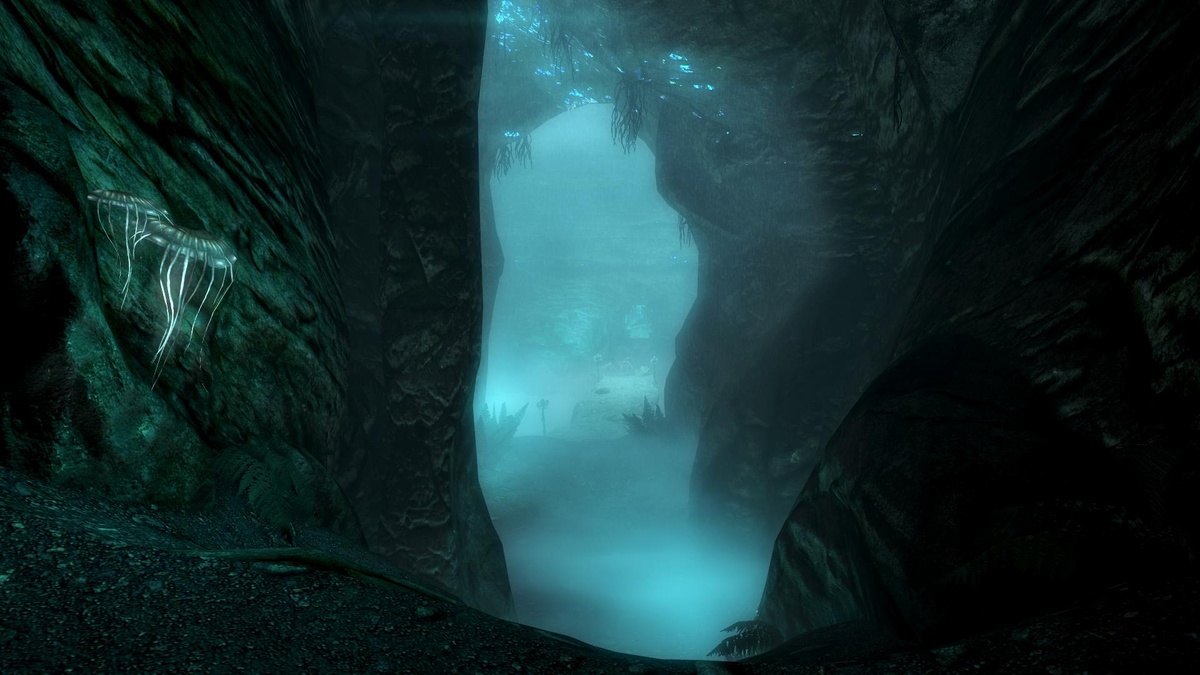 Владение Вайтран – локации. О местонахождении этой пещеры Довакин может случайно услышать от городского стражника, который видел возле неё «какое-то мерзкое существо». Так же эта локация может случайно оказаться целью радиант-квеста Соратников «В Скайриме неспокойно»: Возвышающийся на краю тундры скалистый утёс находится сравнительно недалеко от столицы владения – отсюда хорошо виден Драконий Предел. У входа в пещеру сразу становится ясно, какое «мерзкое создание» тут шныряло: тотем и оградки из частей корусов не оставляют сомнений в том, что здесь обитают фалмеры. Пройдя по тёмному коридору, герой оказывается в полузатопленном гроте с низвергающимися откуда-то сверху в небольшое озерцо водопадами. На дне водоёма никто не удосужился спрятать какую-нибудь нычку – по крайней мере, мой Дова нырял, нырял – но ничего так и не обнаружил. На каменном мосту обычно караулит забредших сюда приключенцев морозный паук, но для опытного бойца он не преграда. Дальше тоннель ведёт в пещеры, где обит